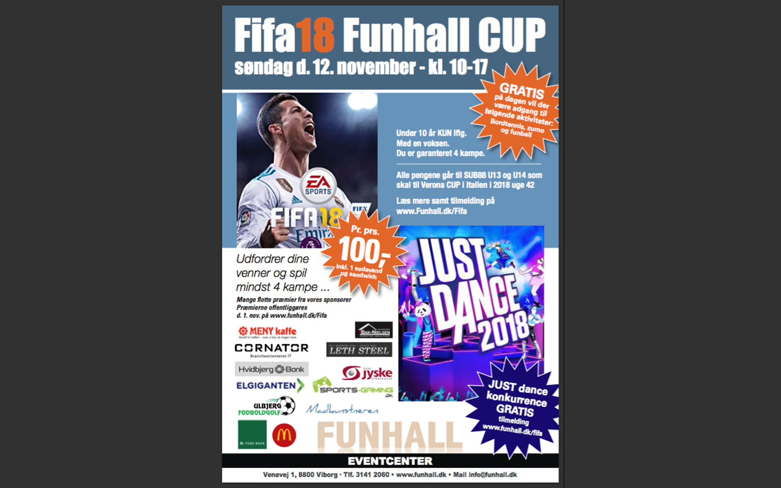 ”I efteråret 2018 arrangerer SUB88 endnu en fodboldtur til Italien. I den forbindelse afholdes der den 12. november et støtte arrangement for at indsamle penge til turen”
