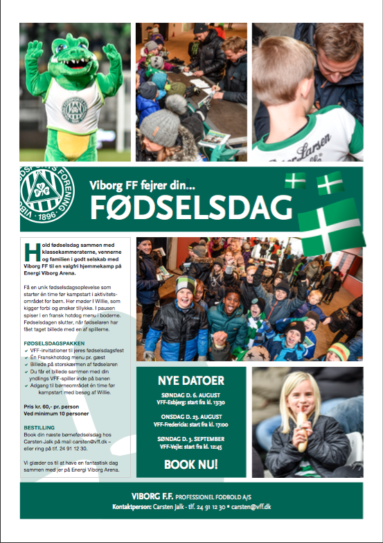 VFF tilbyder at du kan holde din fødselsdag sammen med dem og få en oplevelse for dig og dinne gæster